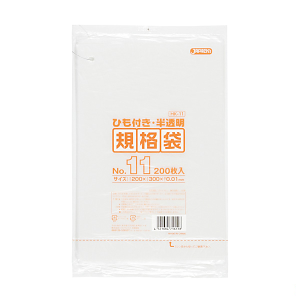 製品名ジャパックス HD規格袋ひも付きタイプ 半透明 No.13 HDPE 厚み0.010mm 200枚入x50冊 HK13