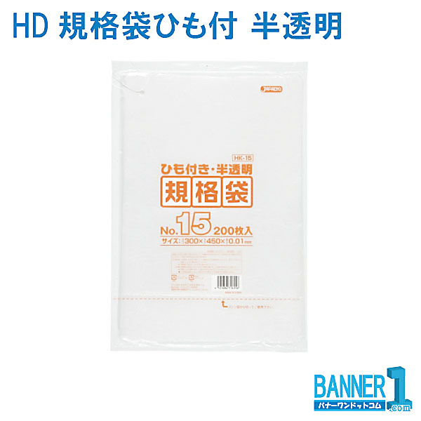 製品名ジャパックス HD規格袋ひも付きタイプ 半透明 No.15 HDPE 厚み0.010mm 200枚入x200冊 HK15 代引不可